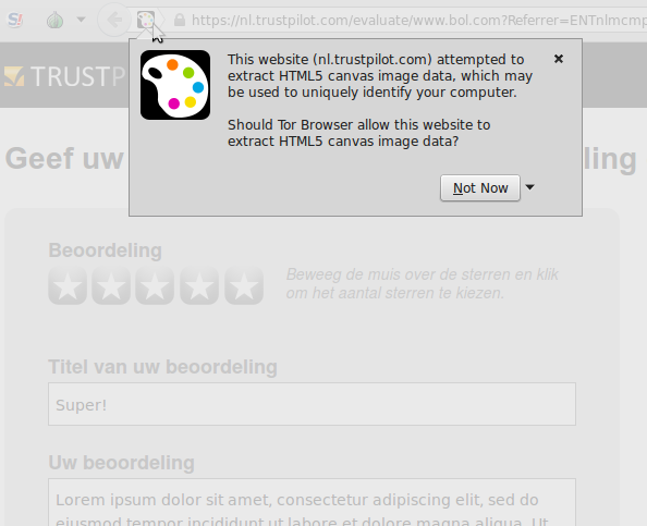 When you click through on a webshop's request for a general review, you land on a trustpilot.com page. Would you carry on with your review after this warning?